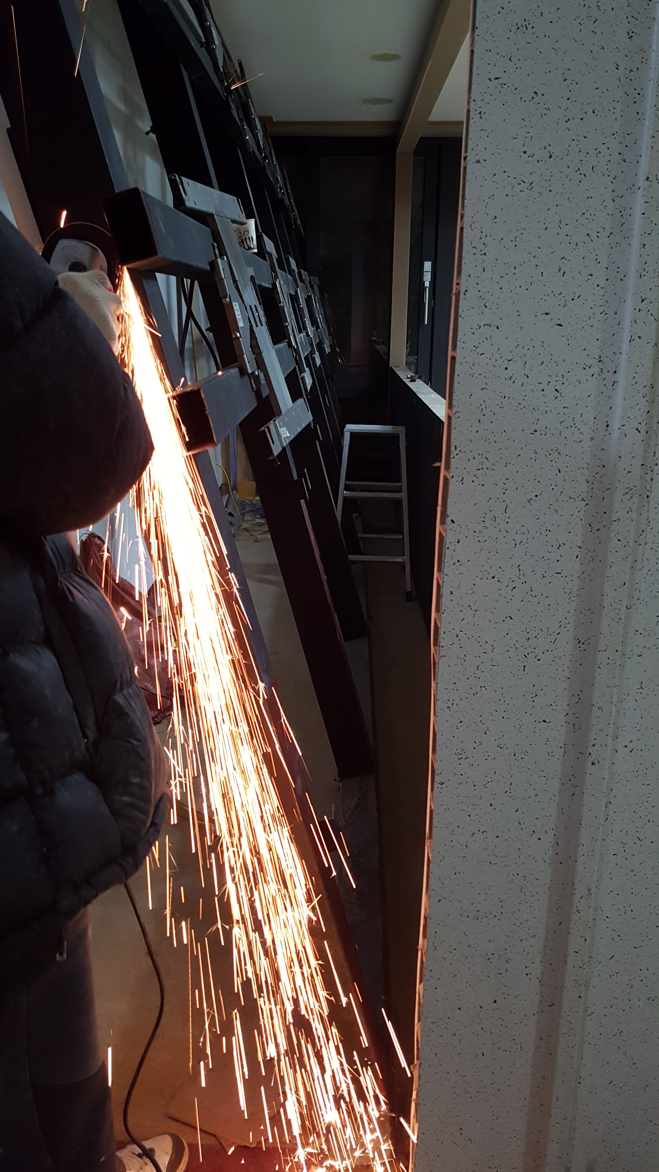도로공사 실내 관제실 부분에 금속 철골로 CCTV 모니터링 할수 있는 상황실 인테리어